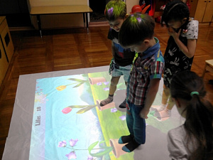 Это чудо техники появилось в детском саду «Родничок» города Когалыма. Мини-компьютер, специальная камера, прожектор, проектор и программное обеспечение создают для малышей совершенно новый, волшебный мир, прямо у них под ногами. Не выходя из группы, в одно мгновение, ребятишки могут стать путешественниками во времени и в пространстве. «Дети вряд ли догадывались о существовании такого «чуда» человеческого изобретения, и, когда я им предложила сыграть в футбол на таком полу, они были просто в восторге», — говорит педагог одной из групп Гюлли Бабаева. Интерактивный пол можно использовать на любом покрытии, а для воспитателей предусмотрен богатый сценарный материал — 48 интерактивных эффектов с визуальным и звуковым сопровождением. С помощью интерактивного пола можно проводить развивающие, развлекательные и релаксационные занятия.