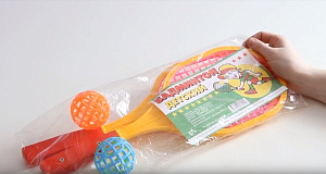 «Бадминтон детский» состоит из 2-х ракеток и 2-х мячей. Набор поставляется в прозрачном чехле-пакете. Лёгкие ракетки, размер которых 42 сантиметра, отличаются высоким качеством исполнения, долговечностью и удобством в использовании.
