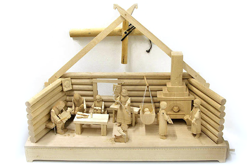 Игрушки вырезали из липы, ольхи, осины — мягких пород дерева. Выберет мастер полено подходящее, расколет его на несколько частей, и пошла работа! Резьба выполняется быстро, крупными и мелкими порезками. При такой фактурной обработке поверхности дерева достигается чёткость силуэта каждой фигурки игрушки, и создаётся эффект светотени. Вот поэтому резчики, в основном, оставляют игрушки неокрашенными. Мы видим естественный, тёплый цвет дерева. Для занимательности богородские игрушки делаются «в движении». Медвежата, зайчики, лисички играют на балалайках, ловят рыбу, строят, стирают. Всем знакома знаменитая игрушка «Кузнецы». Слышите: «Тук, Тук»? Это мужик с медведем, как заправские кузнецы, дружно стучат молоточками по наковальне. А вот поучительная игрушка «Курочки клюющие». Интересно наблюдать за дятлом, добывающим себе корм из ствола дерева (игрушка «Дятел»). Резные богородские игрушки сделаны из экологически чистых пород дерева, развивают моторику детских пальчиков. Эту игрушку и на зубок попробовать можно, и сказку про неё послушать. Богородский резной промысел имеет в своём богатом арсенале и функциональные сувениры — карандашницы, копилки, настенные панно, письменные приборы и шахматы.