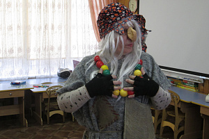 Психолог. Ребята, а давайте поможем нашей Бабе Яге стать доброй! Поиграем в игру «Кто больше добрых и тёплых слов скажет Бабе Яге». (Дети по очереди говорят Бабе Яге добрые слова и одевают на шнурок бусинки.)