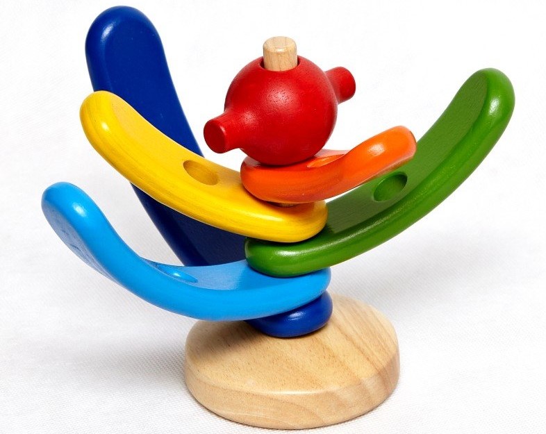 Своеобразная конструкция позволяет усложнить действие нанизывания, делает игру более вариативной. К большому преимуществу игрушки относятся богатые возможности действий с ней — пирамидку можно собирать самым разным образом. Это способствует усложнению и разнообразию предметных действий и развитию образного восприятия возникающих фигур. Её можно использовать и без стержня — как конструктор — получается замечательный забор, ёлочка и даже вертолёт с крутящимся пропеллером. Игрушка развивает познавательную активность, предметные действия и воображение.