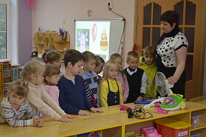 Воспитатель. Ребята, скажите, воздух — он какой? (Ответы детей: прозрачный, бесцветный, невидимый, без запаха, принимает запах другого вещества, чистый, прохладный, тёплый, холодный, морозный, приятный, свежий, лёгкий, сухой, грязный.) Вот мы нашли ответ на первый вопрос Лунтика. Это, оказывается, воздух. Чтобы ответить на следующий его вопрос, нам надо разделиться на группы. Подойдите, пожалуйста, к столу и возьмите карточки, посмотрите на них, и займите свои места в лаборатории. (Дети рассаживаются за столы.)