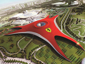 Этот парк виден из иллюминаторов — огромный красного цвета треугольник, со сторонами по километру каждая, среди настоящей пустыни. Можно даже разглядеть огромный 65-метровый логотип «Феррари» на крыше парка. Общая площадь крыши составляет 200 000 м2 с периметром в 2 200 м. Площадь самого парка — 86 000 м2. Это самый большой крытый тематический парк в мире!Возможность прокатиться на самой быстрой пневматической американской горке в мире «Formula Rossa» — то, ради чего, собственно, все и стремятся в «Ferrari World». Вагонетка в форме гоночного болида разгоняется до скорости 240 км/ч примерно за 4,9 секунды, используя систему запуска, которая сравнима со стартовой катапультой, используемой на авианосце.