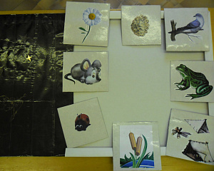 Ход игры. Воспитатель раскладывает перед ребёнком картинки. Ребёнок переворачивает и выкладывает их на чёрную сторону выдвижной доски (ночь) в соответствии с услышанным текстом.