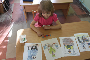Рая. Составь из слогов слова, и ты узнаешь ещё несколько профессий, с некоторыми из них мы с тобой познакомимся. (Ак-тёр, мас-тер, мат-рос, шах-тёр, са-ни-тар, ох-ран-ник.) Повторяй за мной, чётко произнося звук [р], скажи, где находится этот звук (ФотогРаф, архитектоР, Радист, электРомонтёР.)Рая. Мне понравились наши с тобой новые профессии. Назови их. Какая профессия тебе больше понравилась и почему? С каким звуком мы сегодня работали? Спасибо, ты сегодня очень хорошо постаралась и правильно выговаривала звук [р].
