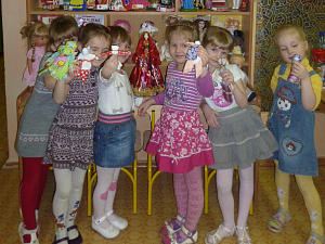 С детьми младшего дошкольного возраста экскурсию усложнили: рассказали им, что куклы бывают твёрдые (из пластмассы), мягкие (тряпичные), а также из соломы. Детей старшего дошкольного возраста мы познакомили с историей возникновения куклы и сделали первую куклу «Кувадку».