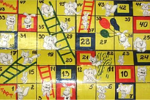 - Ослик поднимается ввысь на воздушных шариках с клетки «26» на клетку «38».