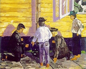 Игра в «пристенок» «отметилась» не только в литературном творчестве, но и в художественном. В 1918 году С.Н. Рерих написал картину «Дети, играющие в «пристенок». Сейчас картина находится в частной коллекции.