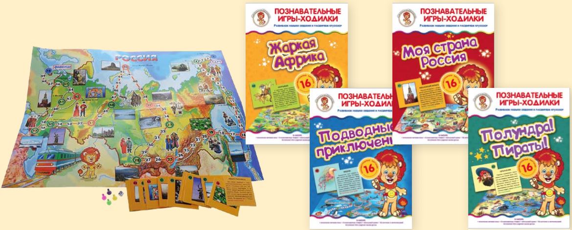 Классические игры-ходилки обычно выступают в роли первых настольных игр для малышей. Но как здорово, когда они ещё и интересные! У нас для каждого найдётся подходящий вариант: «Полундра! Пираты» – для юных любителей приключений, «Жаркая Африка» – для детей, любящих животных, «Подводные приключения» – для любителей морских стихий и «Моя страна Россия» – для любознательных патриотов.Настольные игры «Познаём мир»