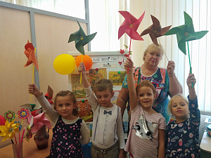 Если на вертушку подуть или вынести на улицу в ветреную погоду, то она закрутится. У детей это вызывает радость и интерес. В конце мастер-класса организовывается выставка детских вертушек, а также и игрушек-ветерков, которые дети сделали дома вместе с родителями. Такую игрушку можно использовать как в игровой деятельности, так и в развивающих целях.