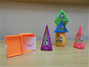 Описание: перед ребёнком на столе контейнеры. Он выбирает понравившийся контейнер и открывает его. Внутри находится картинка с изображением предмета. Ребёнок четко, громко называет предмет. Если в слове есть закрепляемый звук, то дошкольник кладёт картинку на правый угол стола, а если звука нет, то на левый угол стола.