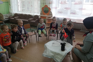 А потом Бим приносит пшено. И будущие гении инженерной мысли учатся сравнивать и проговаривать результаты сравнений. После этого из чудесного ящика извлекается пластиковая бутылка, и она пустая. Ребята тут же бросаются исправлять этот недостаток – наполнять крупой. И зёрнышки разлетаются повсюду. Как же всё-таки наполнить бутылку, не просыпая зёрнышки мимо? В чудесном ящике очень кстати оказывается тетрадный лист, из которого получается отличная воронка. Это первое изобретение мини-инженеров. И так начинается их знакомство с инструментами. И постепенно каждый ответственный инженер обретает навык - наполнять ёмкость засыпным материалом без потерь объёма (ну и взрослые вокруг становятся чуточку счастливее).
