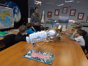 Этап 2. Накопление информации. С дошкольниками рассмотрели энциклопедии о космосе, которые они приносили в детский сад, им продемонстрировали видеосюжеты «Один день в космосе», «Что такое астероид?», «Планеты, галактики». Вместе с родителями дети посетили Мини-планетарий в музее «Метеорологическая станция Симбирска» и «Музей авиации и космонавтики» в школе № 69 Ульяновска.