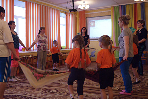 Инструктор: Соединим наши платки вместе в весёлый хоровод и исполним танец с платками.