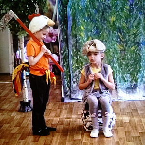 Особенно интересны детям разыгрывания сказок «с листа», когда дети, сами рассказывая сказку, тут же сами её и показывают. Это и тренировка памяти, и осознание себя в социуме, умение работать в команде на результат и просто хорошая эмоциональная разгрузка для ребёнка. Как вариант мы в своей работе часто используем аудиосопровождение таких сценических этюдов, когда дети не произносят, не проговаривают сказку, а разыгрывают пантомиму под включенную профессиональную запись сказки.