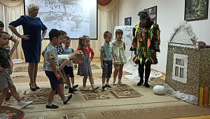 Воспитатель: Какой огромный сугроб! А может и вправду там кто-то живёт?! (Стучит по сугробу.)