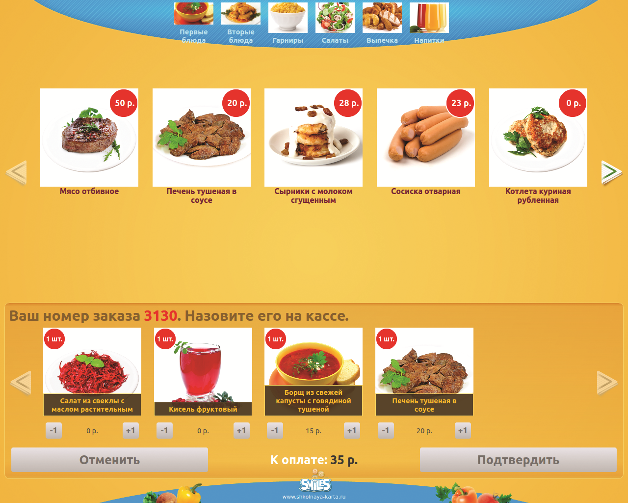 В школах, где уже используют новые технологии, каждый ученик получает персональную карту, к которой «привязан» электронный кошелёк родителя. Свои денежные средства ученик может потратить только в школьной столовой и буфете. Для этого в школах устанавливаются специальные терминалы с touchscreen-экранами для выбора продуктов. Школьное меню представлено на мониторе в виде ярких картинок, а принцип действия терминала понятен даже первокласснику.