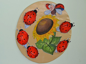- «Божьи коровки», «Цыплята», «Бабочки» — игровые модули, закрепляющие знания по формированию элементарных математических представлений. Все персонажи закреплены на липучках. Ребёнок может снять их с основы и прикреплять по одной, считая. Самые маленькие дети овладевают понятиями «один» и «много». Помимо этого, закрепляется понятие «форма» — круг, квадрат, треугольник и «цвет» — зелёный, жёлтый, розовый (промежуточный).