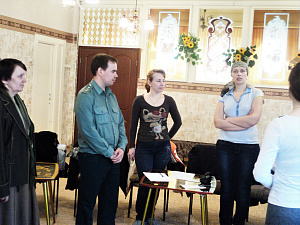 Организационный момент. Родители делятся на 2 группы при помощи карточек. Каждый родитель берёт карточку с изображением игрушки и должен объединиться с теми родителями, у которых подобные карточки (мягкие и музыкальные игрушки). Каждая группа получает листок с описанием ситуации, где родитель играет с ребёнком.