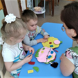 Игровое пособие книжка-малышка «Фетровый Цветочек» разработано нами для развития речи младших дошкольников в ходе подгрупповой и индивидуальной непосредственно организованной или свободной деятельности. Оно представляет собой мягкую книжку, основа которой сшита из цветного фетра в виде цветка. Страницы книжки связаны разноцветными ленточками, к каждой из них прилагается наглядно-демонстрационный материал для создания игровых ситуаций при выполнении детьми развивающих речь упражнений. Он изготовлен из фетра, ленточек, пуговиц, бусинок, кнопочек, бантиков и крепится с помощью липкой ленты, кнопок, пуговиц или зажимов. Представим читателям некоторые страницы этого авторского пособия, а также игровые ситуации, дидактические игры и упражнения, которые предлагаем детям при его использовании.