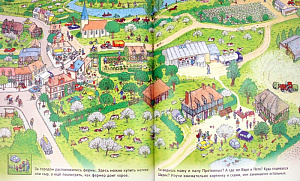 Итак, перед вами книга-пряталка: масштабная иллюстрация на весь разворот, состоящая из множества мелких деталей. Чем интересна и полезна ребёнку такая книга? Во-первых, развитием внимания. На картинках изображено множество персонажей, все они чем-то заняты. Попробуй, отыщи какого-то одного среди всех. А именно такие задания чаще всего даются внизу или сбоку странички. Во-вторых, развитием речи и фантазии. Как уже говорилось, печатного текста нет или совсем мало. А значит, нужно самому рассказать, что происходит на этой картинке, связать все изображённые события в единый сюжет, объяснить, что случилось вначале, а что уже потом. В-третьих, познавательным аспектом. Обычно каждая из таких книг посвящена какой-либо теме. Это могут быть как привычные темы «Дома/на улице/в деревне», так и совсем специфичные «Средние века», «Жизнь пустыни». Читать книги на такие темы ребёнок, может быть, и не захочет, а вот разглядывать картинки, задавая попутно вам вопросы, будет рад. Нельзя указать определённый возраст, которому адресованы книги. Рассматриванием картинок равно увлекутся и трёхлетний малыш, и средний дошкольник, и младший школьник, а ещё родители и бабушки с дедушками.