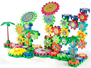 Шестерёнки выпускают самые разные производители, они бывают деревянные и пластиковые, с дополнительными функциями и без них. В самом простом варианте есть платформы, которые соединяются между собой штырьками, и шестерёнками разных размеров и цветов, которые вставляются в штырьки, цепляясь друг за друга и заставляя вращаться всю конструкцию.