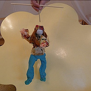 Чтобы марионетка двигала ногами, подпрыгивала, танцевала, переднюю планку нужно снять с прищепки и двигать ей из стороны в сторону. Управлять марионеткой не так-то просто, так что сначала придётся немного потренироваться. Пошевелите каждой ниточкой из стороны в сторону, подёргайте то за одну, то за другую. Ну, а когда ваша кукла научится быстро бегать, ловко прыгать и весело танцевать под музыку, приглашайте друзей на представление!