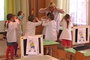 Логопед: А чтобы красиво и правильно говорить, что нужно делать? Артикуляционную гимнастику! Итак, приступим. (Артикуляционная гимнастика.) Приглашаю вас в первый отдел.