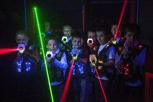 Ненастоящее оружие с лазером изначально придумывалось вовсе не как детская игрушка, а как обучающий элемент для солдат. Команда, вооружённая таким оружием может отрабатывать сложные военные операции, тренировать общее взаимодействие. Так появился лазертаг — высокотехнологичная игра с использованием лазерного оружия. Цель этой игры, как и любой другой военно-тактической, ликвидировать противника. «Выстрелы» производятся безопасными лазерными лучами из бластера-автомата. Собственно «поражение» игрока происходит путём регистрации луча бластера-автомата специальными датчиками оппонента (сенсорами), закреплёнными на одежде игрока или на специальном жилете или повязке. Эдакий пейнтбол, только оружие легче, да в целом игра безопаснее. Безопасность лазерного луча заключается в его инфракрасном диапазоне, он невидим для человека и безопасен для глаз. Подсчёт «жизней» ведёт техника, нет расходных материалов, не нужна особая защита. Для лазертага подходит и помещение и открытая местность. Клубы выстраивают специальные зоны боевых действий, полигоны с заброшенными зданиями, чтобы добавить игрокам сложности, игре — антуража в целом. По желанию участников они могут просто играть команда против команды, а могут воспользоваться рядом специально подготовленных сценариев, в которых прописаны боевые задачи, пути и стратегия. В лазертаг играть могут и взрослые и дети, ограничений по физической подготовке нет.