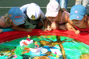 В эту игру можно играть и дома в ванной, и в бассейне, и на природе — при наличии надувного бассейна. Для этого играющим необходимо построить из бумаги свои корабли для дальнего плавания. Затем каждый опускает кораблик в бассейн с водой. Расположение его должно быть таким, чтобы ребёнку было удобно дуть на кораблик. С помощью плавного, длительного, но в то же время сильного выдоха кораблик отплывает от берега. Победит тот капитан корабля, чей кораблик первым доплывет до противоположного берега. Игру можно усложнить, если корабль будет перевозить небольшой груз.Гномики — в домики