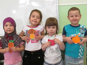 Воспитатель. Ребята, во фруктах и овощах содержится много витаминов. Витамин А — в моркови и красном помидоре. Витамин С — в капусте и луке… а ещё где?