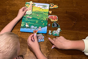 - взрослый высыпает все вкладыши, задача ребёнка – по питанию распределить животных;