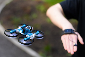 Это настоящий прорыв среди привычных солдатиков и самолётиков, которые надоедают на следующий день. С мотодроном можно играть как дома, так и на улице. Освоить управление легко всего за 15 минут, а придумывать и воплощать новые трюки можно бесконечно. Он абсолютно безопасен для детей, так как его лопасти выполнены из пластика для уменьшения риска урона, а точки вращения лопастей защищены от прямого удара с ударяемой поверхностью по бокам. Зона полёта дрона рассчитана на расстояние до 60 м, работает до 12 мин в режиме дрона и до 20 мин в режиме мотоцикла. Браслет управления жестами и аккумулятор дрона заряжаются через USB.