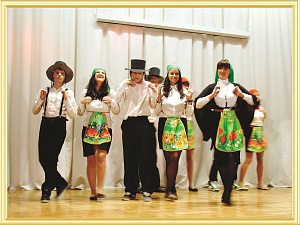 Ведущий. А теперь мы попадаем в республику Марий Эл, которая знакомит нас с Приволжским Федеральным округом. (Звучит марийская народная танцевальная мелодия.)