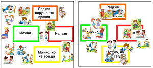 В зелёную зону размещаем все, что разрешается делать ребенку по его собственному усмотрению и то, что ему разрешают взрослые. Например, выбрать, в какие игрушки играть, когда сесть за уроки, в какой кружок записаться, с кем дружить, какую книжку читать, чем рисовать.