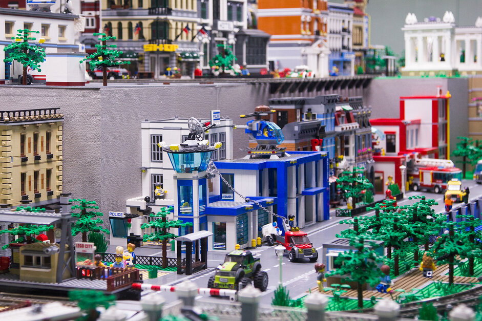 Главным экспонатом музея является огромный интерактивный город, который на 100% выполнен из деталей LEGO. Его площадь составляет 21 кв.м. В этом городе есть всё, что и должно быть в любом мегаполисе: аэропорт, зоопарк, парк аттракционов, метро, стройка и прочее. Особенный интерес у посетителей вызывает то, что с их помощью город оживает.