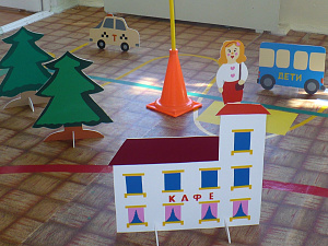 В нашей посылке, посмотрите, есть все персонажи для того, чтобы город начал жить. (Дети распределяют роли: делятся на пешеходов, водителей и пассажиров, выбирается милиционер. По сигналу свистка светофора начинается движение транспорта и пассажиров. Если пешеход или водитель нарушает правила, то милиционер останавливает движение, делает прокол в талоне водителя, пассажиру предлагает посидеть на скамейке, чтобы со стороны изучить правила дорожного движения.)