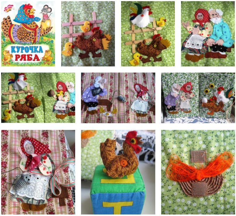 Книжку-игрушку про курочку Рябу я сшила на день рождения своей внучки Таси. Поскольку рисовать я не умею, но в состоянии перевести картинку, то и принялась за поиски искомых изображений. Мною было забраковано много иллюстраций, пока я не увидела в сети рисунки художника Вячеслава Жигарева к сказке «Курочка Ряба» издательства «Фламинго, 2004 года. А дальше - дело техники: распечатать и перевести картинки, подобрать материалы.