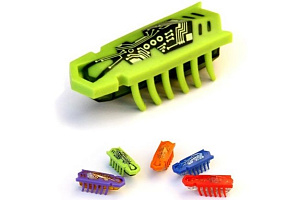 Итак, «наножуки». Представлен очень большой ассортимент самых разнообразных насекомых. Признаться, на мой взгляд, внешне они имеют мало схожего с живым оригиналом. А вот поведение… Игрушка состоит из мини-робота жучка и разных «нанодромов», то есть лабиринтов, по которым электронное насекомое двигается. Лабиринты эти можно конструировать из отдельных элементов самостоятельно. Построил, запустил жучка и наблюдаешь, как он носится по трассе. Зрелище увлекательное даже для взрослого. Но ещё интереснее постичь тайны этого чуда робототехники. Жучок ведёт себя как настоящая букашка: носится по полу из угла в угол, непредсказуемо меняет траекторию движения, перевернётся – самостоятельно встаёт на ноги. Как же он движется? Маленький вибрирующий механизм внутри микроробота заставляет жучка практически незаметно подпрыгивать. Из-за этого ножки (на взгляд обывателя сделанные из материала, похожего на силикон) сгибаются и распрямляются, тем самым двигая насекомое вперёд. Для любопытных «почемучек» предусмотрена наглядность: нижняя часть корпуса жучка выполнена из прозрачного пластика. Если запустить в лабиринт несколько жучков сразу, их поведение напоминает рой настоящих насекомых. С первого взгляда покажется, что движение хаотично, но, приглядевшись, можно увидеть взаимопомощь или соперничество. Насмотревшись на чудеса техники, я задала продавцу вопрос, мучивший меня с самого начала: «Скажите, а что за наночастицы в этих жучках?». Молодой человек рассмеялся и сказал, что Nano – это просто название серии таких роботехнических игрушек. А жучок работает от батарейки.
