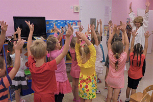 Воспитатель: Вот так домовёнок Кузя и массаж ушей сделал, и повеселил вас! Давайте тоже повеселим Кузю, поиграем в обезьянок – я буду говорить, что делают обезьянки, а вы повторяйте! (Игра «Обезьянки». Дети держатся руками за уши – самомассаж ушей.)