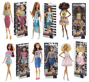 У кукол отличается цвет волос, глаз и кожи, разные причёски и овал лица. Им подходит любой стиль: спортивные майки и образы для ковровой дорожки, популярные платья в горошек и блузки с затейливыми принтами, богемный шик и рокерские наряды, босоножки на каблуках, туфельки, балетки, кроссовки, милые ботиночки. Каждая кукла Barbie® по-своему уникальна и неповторима, как и любая девочка. Они могут носить чёлки и проборы, кудряшки и прямые волосы, быть шатенками, блондинками и рыжими, краситься в брюнетку и в дерзкий пурпурный. Не стоит забывать и про аксессуары: бусы, очки, серёжки и сумочки. Barbie Fashionstas позволят девочке развивать фантазию, придумывать новые образы и сюжеты для ролевых игр. Кукла Barbie поможет найти свой собственный стиль! Собери свою коллекцию Barbie Fashionistas!