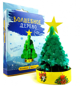 Наборы для выращивания миниатюрных ёлочек из кристаллов. Смысл наборов заключается в том, чтобы самостоятельно вырастить из кристаллов настоящую новогоднюю ёлочку. Для проведения эксперимента в комплекте имеются все необходимые материалы, которые варьируются в зависимости от производителя, но перечень примерно похожий. Это картонная основа для будущего дерева, подставка, изгородь, а также жидкость для выращивания ярких кристаллов. Заметьте: ваша ёлочка необязательно должна быть традиционно зелёной! И тогда готовая поделка становится истинным украшением интерьера.