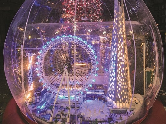 Самый большой в мире снежный шар из конструктора LEGO построил британец Данкан Титмарш. На его постройку потребовалось около 120 тысяч кирпичиков LEGO и 75 дней работы. Инсталляция представляет собой огромный прозрачный шар, внутри которого установлено 14 макетов основных достопримечательностей Лондона, в том числе Биг-Бен, театр Шекспира «Глобус» и The London Eye. При этом высота небоскрёба The Shard превышает рост среднестатистического человека. Конструкция установлена на территории Конвент-Гарден в Лондоне.