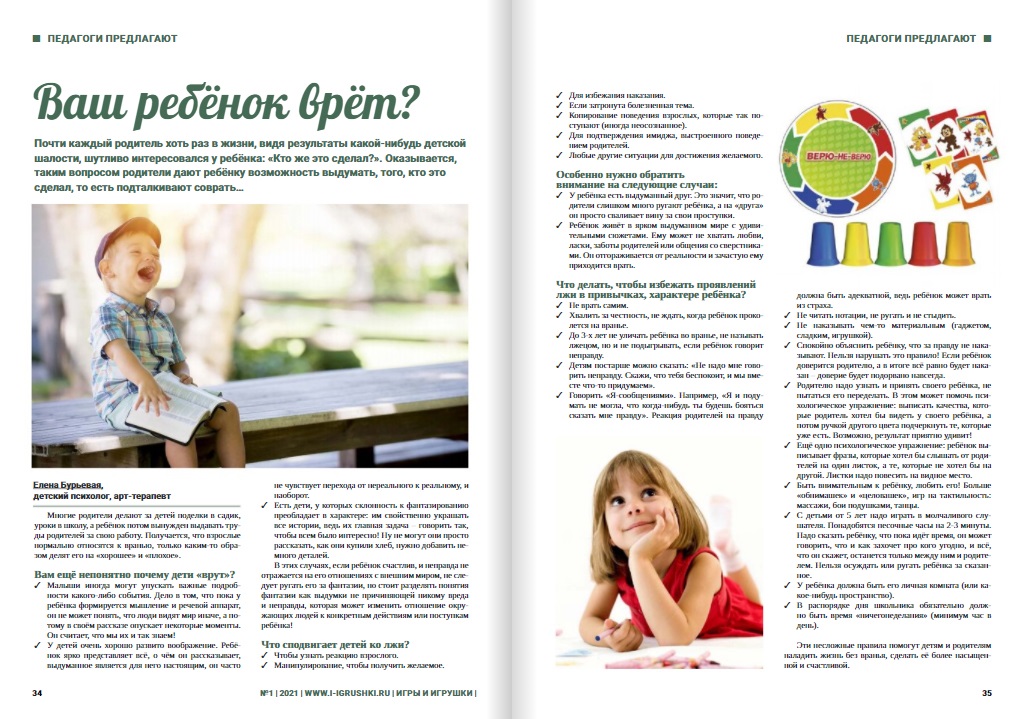«Игры и Игрушки» — тот журнал, которым хочется завлечь максимальное количество родителей. Он не только развлекательный, как и большинство изданий, но ещё и содержит много нужной информации от педагогов, психологов, производителей игрушек, которая изложена доступным и понятным языком. Журнал для родителей про игрушки, что может быть интереснее — 100 страниц погружения в увлекательный мир детства!