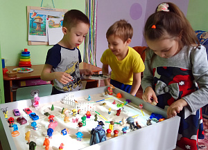 Во время игр с песком у детей включается фантазия, дети создают целые миры, наполняя их удивительными жителями, рассказывают истории, сочиняют сказки о своих героях. Таким образом избавляясь от внутренних переживаний, конфликтов, неуверенности в себе. На занятиях песочной терапии мы с детьми развиваем мелкую моторику, познавательные процессы (внимание, воображение, восприятие, речь), графические навыки.