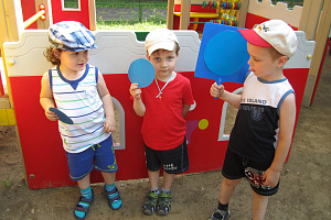 Задача детей: не ошибиться и выйти правильно — на своей остановке, то есть сопоставить цвет своего кружочка с цветом кружочка на остановке. Во время движения, автобуса по сигналу водителя, дети могут выполнять различные движения (поднять руки вверх, в стороны, могут шагать, прыгать на двух ногах и т. д.).
