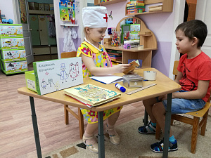 К сожалению, у дошкольников было мало знаний о том, как можно восстановить старые или порванные книги. Поэтому я предложила сюжетную игру «Книжкина больница». В данной игре пациентами были книги с дефектами, а доктор в своей работе использовал не таблетки и градусник, а скотч, клей и ластик. Детям понравилась данная затея, и они с радостью перевоплотились в свои роли. В игровой форме ребята познакомились с различными способами ремонта книг и стали более внимательно и аккуратно к ним относиться.