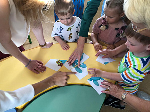 Психолог: Добрый день, дорогие взрослые и ребята! У нас сегодня будет совместное занятие с родителями. Мы очень рады, что вы пришли и наша группа в полном составе. Она формировалась в течение года, к нам присоединялись новые дети, мы их полюбили. Сегодня мы все получше познакомимся, узнаем друг друга, а у мам и пап будет возможность поиграть вместе со своими детьми и весело провести время. Предлагаю всем встать в круг. (Родители, дети и педагоги встают в круг. Педагог-психолог предлагает детям и родителям поприветствовать друг друга и познакомиться со всеми участниками при помощи «Радужного ёжика». Участники передают по кругу мячик и продолжают фразу, предложенную психологом: меня зовут ..., у меня сегодня … настроение, я люблю играть ..., я люблю играть со своим ребёнком …)