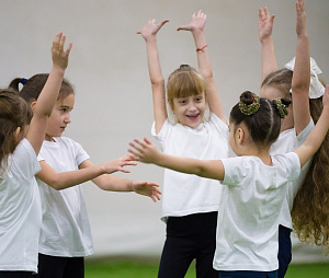 Звучит ритмичная музыка. Психолог показывает несколько движений, одно из них — запретное. Ребёнок должен повторять все движения, кроме запретного.