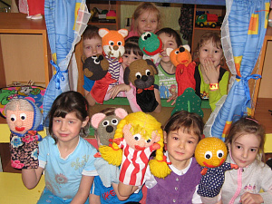 Центры театральной деятельности представлены различными видами театра (пальчиковый, теневой, кукольный, на фланелеграфе, настольный театр картинок), элементами костюмов, предметами-заместителями, шапочками для драматизации. Показ сказок — народных, авторских и сочинённых самостоятельно даёт положительную динамику речевого развития, умение выражать свои эмоции и чувства с помощью мимики и интонации для игровых образов. Разыгрывание небольших спектаклей по сказкам развивает у детей речь, умение эмоционально сопереживать героям, учит умению перевоплощения.Виды театра соответствуют возрасту, к показу и изготовлению кукол привлекаются родители. Сказка постоянно живёт в нашем детском саду. Вместе со сказочными персонажами дети познают мир, учатся думать, считать, сочинять. Именно поэтому сказкотерапия занимает первое место в работе психолога и логопеда детского сада.